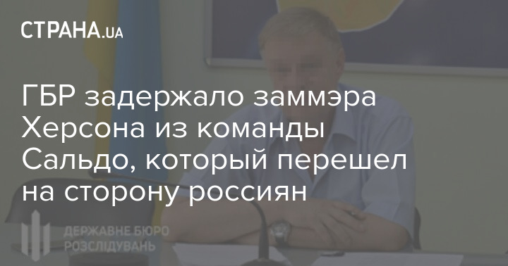 Государственное бюро расследований (ГБР) задержало заместителя городского головы Херсона из команды Владимира Сальдо.