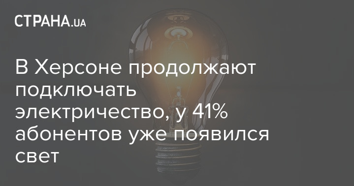 Во вторник, 29 ноября, в освобожденном Херсоне свет есть уже у 41% абонентов.