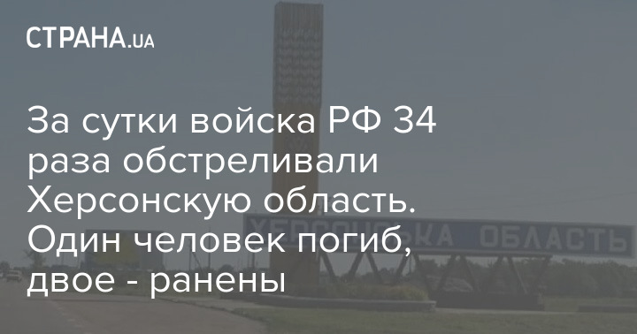 Российские военные за минувшие сутки 34 раза обстреляли территорию Херсонской области. Один человек погиб, еще двое получили ранения разной степени тяжести.