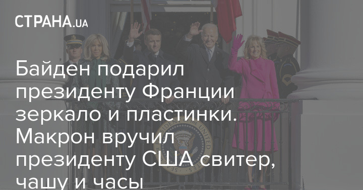 А Макрон привез в Вашингтон виниловую пластинку и CD с оригинальным саундтреком к фильму "Мужчина и женщина" 1966 года, который Байден и его жена Джилл смотрели на первом свидании. Кроме того, Макрон подарил чашу Christof, свитер французского бренда Saint James и часы фирмы LIP.