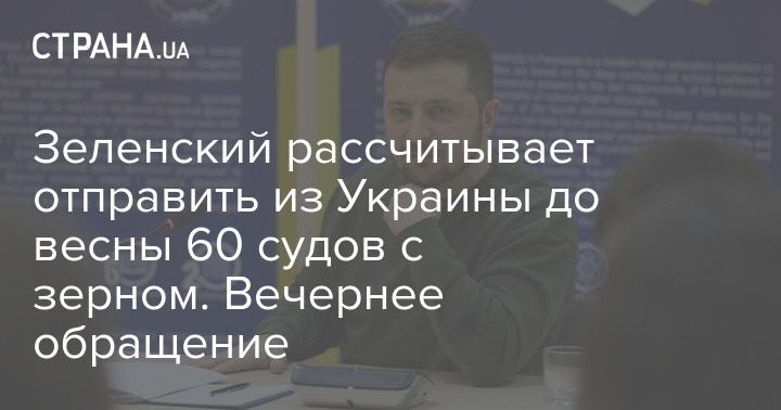Зеленский рассчитывает отправить из Украины до весны 60 судов с зерном. Вечернее обращение
