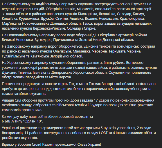 Генштаб ВСУ опубликовал новую сводку. Фото: Генштаб ВСУ