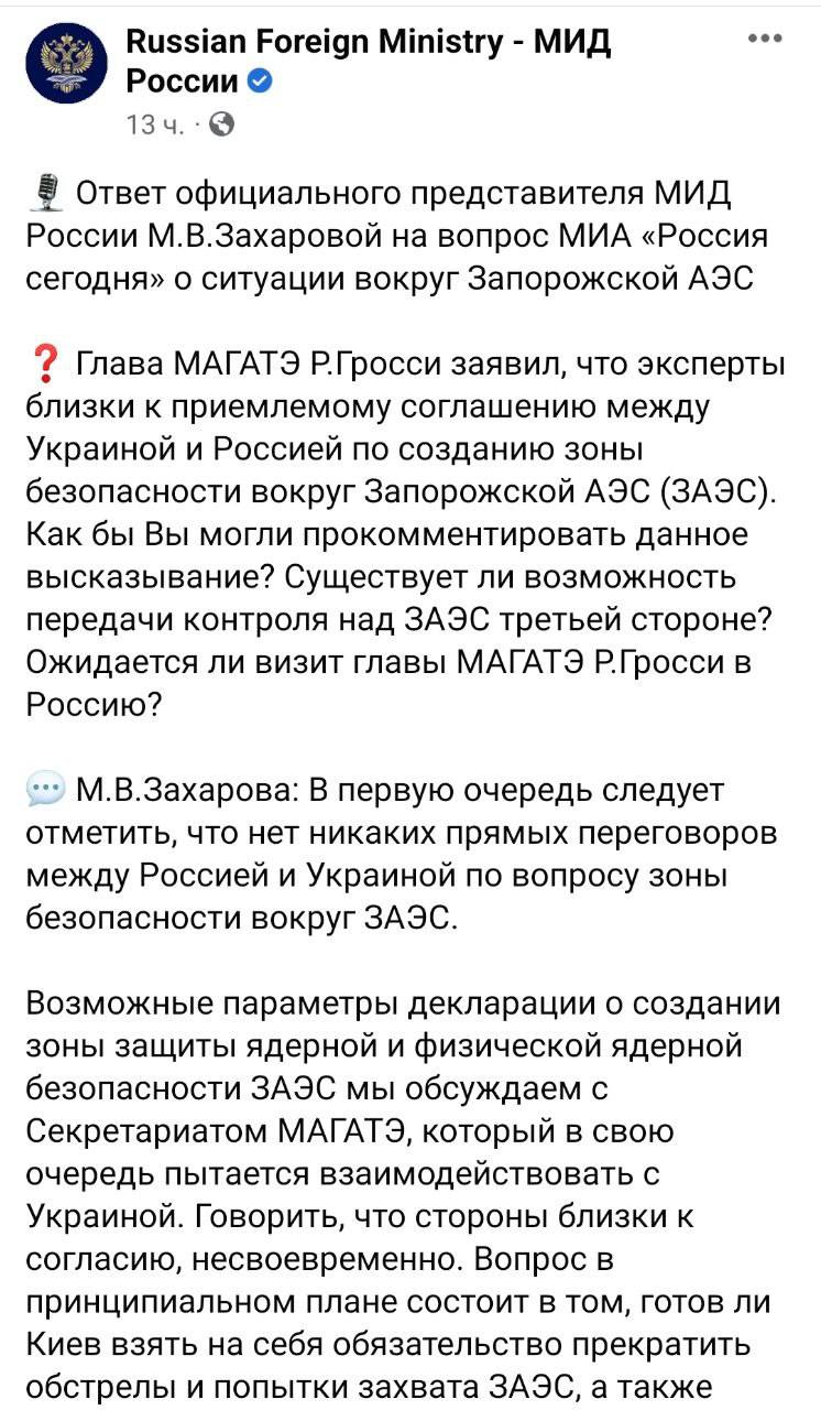 10:21 Продолжаются заявления из РФ, что Запорожскую АЭС они отдавать никому под контроль не намерены.