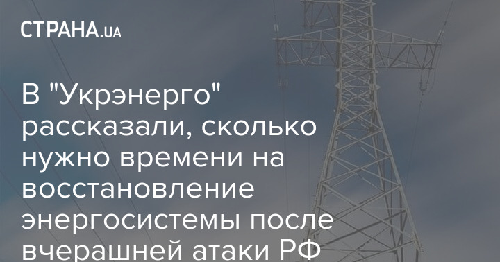 В "Укрэнерго" заявили, что на восстановление объема производства электроэнергии до уровня, который был до вчерашней массированной атаки, потребуется несколько дней.
