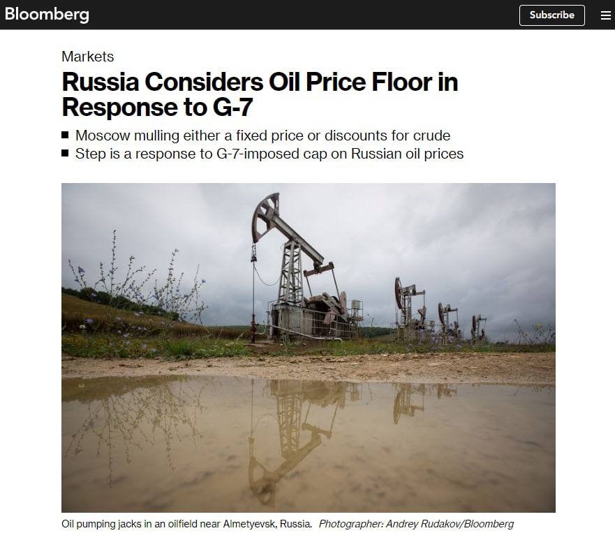 РФ рассматривает введение минимальной стоимости нефти в ответ на установленный G7 потолок цен - Bloomberg