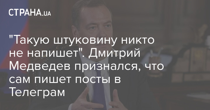 Заместитель главы Совета безлпасности РФ Дмитрий Медведев заявил, что сам пишет посты в своем телеграм-канале, потому что за него "такую штуковину никто не напишет".