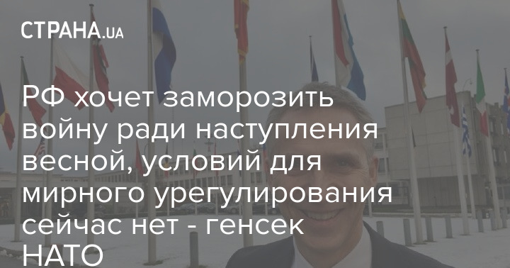 Генеральный секретарь НАТО Йенс Столтенберг заявил, что условий для дипломатического урегулирования войны в Украине "сейчас нет". Он считает, что РФ пытается заморозить конфликт, чтобы начать более масштабное наступление весной.