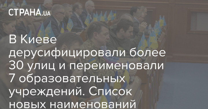 В столице Украины переименовали еще 32 топонима - улицы, переулки и бульвары, названия которых связаны с Россией и советским прошлым. А также депутаты Киевсовета изменили типы и наименования учебных заведений для обеспечения права жителей получать образование в микрорайоне по месту их проживания.