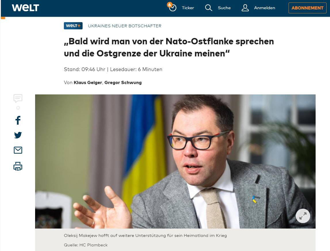 Об этом сообщил посол Украины в ФРГ Алексей Макеев в интервью немецкому изданию Welt am Sonntag.
