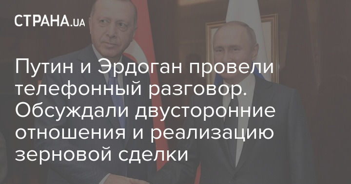 Президенты Турции и России Реджеп Тайип Эрдоган и Владимир Путин провели телефонные переговоры, в ходе которых обсуждали двусторонние отношения и реализацию зерновой сделки.