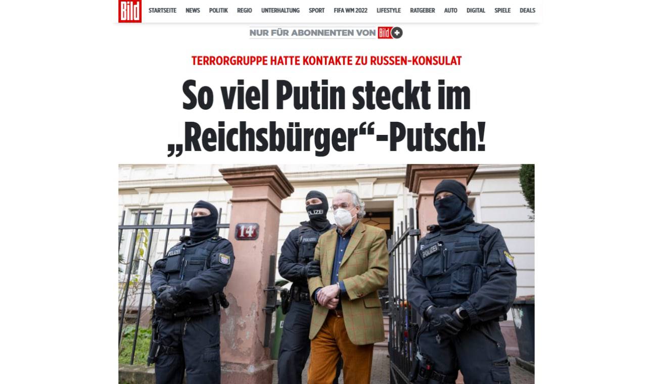 Напомним, недавно в Германии заявили о предотвращении попытки госпереворота. Сообщалось, что путчисты хотели взять штурмом Бундестаг. Правоохранители ФРГ задержали более 25 человек, которые либо были членами организации правого толка, либо поддерживали ее.