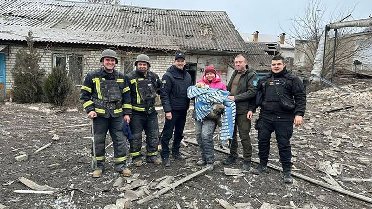 Харьковские спасатели достали из-под завалов разрушенной обстрелами аптеки в Купянске собаку.