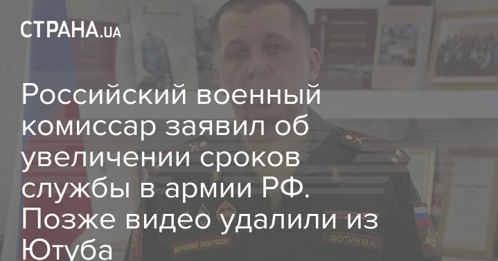 Российский военный комиссар заявил об увеличении сроков службы в армии РФ. Позже видео удалили из Ютуба