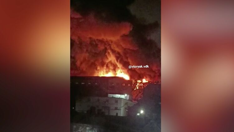 Во Владивостоке произошел масштабный пожар на складе. Скриншот из видео