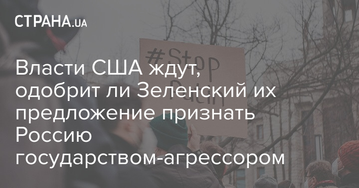 Власти США ждут, одобрит ли Зеленский их предложение признать Россию государством-агрессором
