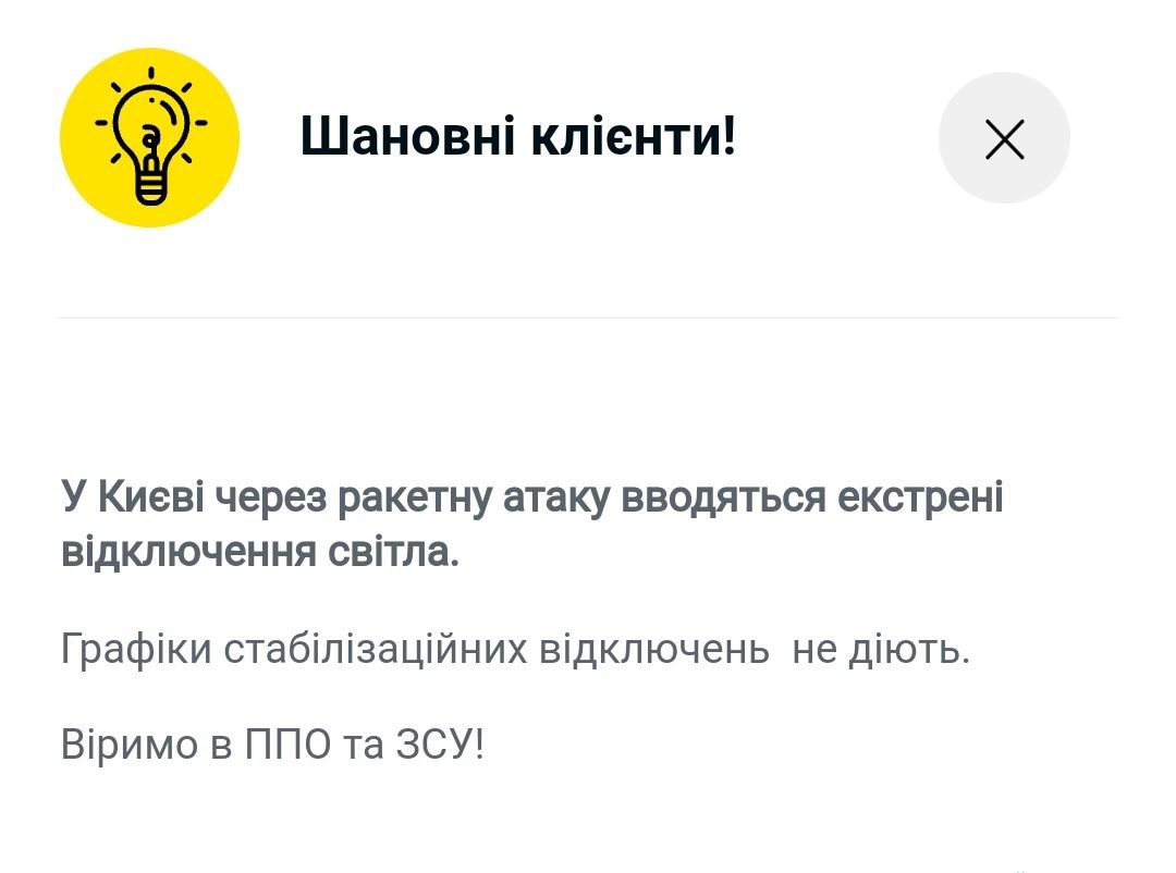 В Киеве в четверг, 22 декабря, по-прежнему нет графиков отключения света - действует экстренный режим отключений .