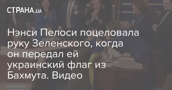 Нэнси Пелоси поцеловала руку Зеленского, когда он передал ей украинский флаг из Бахмута. Видео