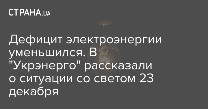 По состоянию на утро 23 декабря дефицит мощностей в энергосистеме Украины несколько уменьшился, но все равно остается существенным. До всех областей доведены лимиты потребления.
