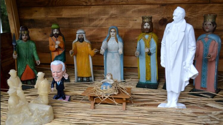 На Львовщине рождественский вертеп дополнили фигурами Бандеры и Байдена. Фото