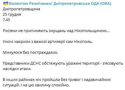 Напомним, 20 декабря ночью россияне трижды обстреляли Днепропетровскую область, повредив дома, газопроводы и ЛЭП.