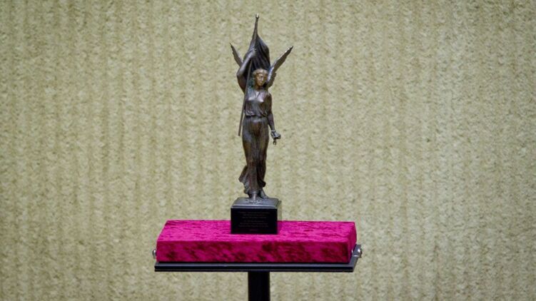 Зеленскому хотят вручить такую статуэтку и 5 тысяч евро. Фото: Делфи
