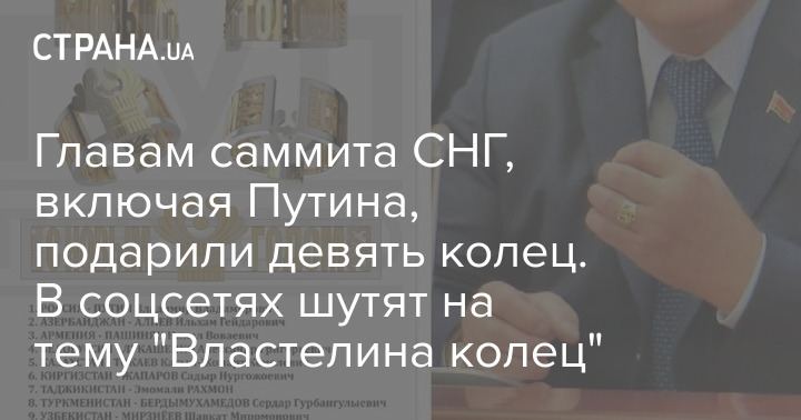 Участникам неформального саммита лидеров стран СНГ, который проходил в Санкт-Петербурге, подарили девять колец. Восемь - гостям мероприятия, и одно - для президента РФ Владимира Путина.