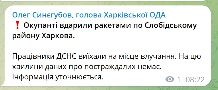 09.24 В Офисе президента подтвердили ракетный удар по Харькову.