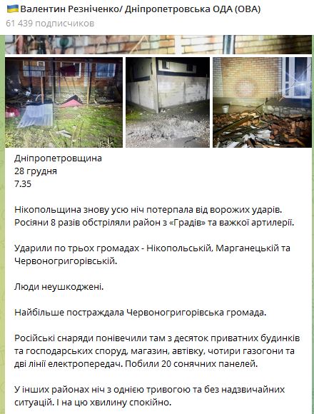 08.00 В Днепропетровской области Никопольский район снова всю ночь вновь был под ударом РФ. Россияне 8 раз обстреляли район из "Градов" и тяжелой артиллерии.