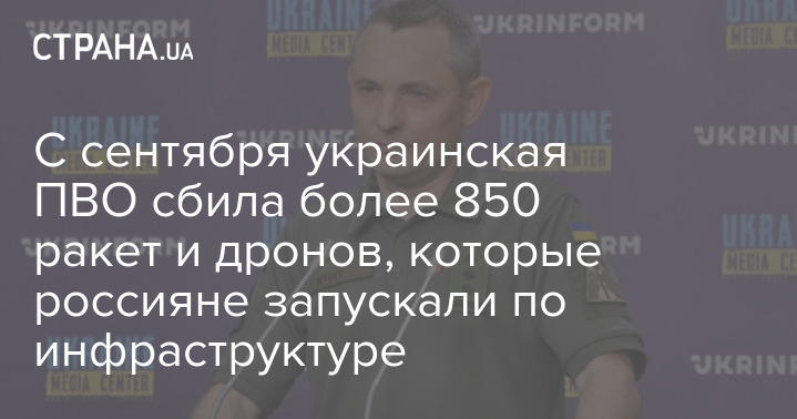 С сентября украинская ПВО сбила более 850 ракет и дронов, которые россияне запускали по инфраструктуре