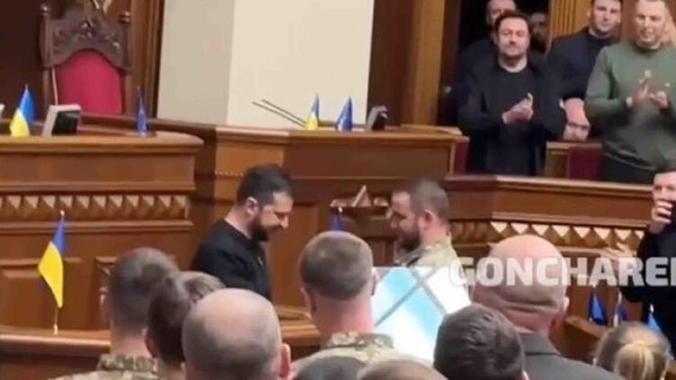 Президент Украины Владимир Зеленский во время сегодняшнего обращения к депутатам Верховной Рады вручил командиру батареи HIMARS, капитану Павлу Чернявскому памятный знак, который попросил передать ему президент США Джо Байден.