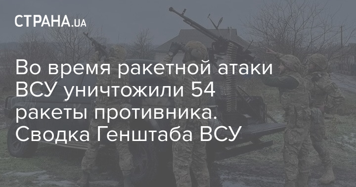 Утром войска РФ нанесли массированный ракетный удар по территории Украины. Противник запустил крылатые ракеты воздушного и морского базирования, зенитные управляемые ракеты из ЗРК С-300 по объектам энергетической и гражданской инфраструктуры в восточных, центральных, западных и южных регионах Украины. По уточненным данным, было применено 69 крылатых ракет. ВСУ уничтожили 54 из них.