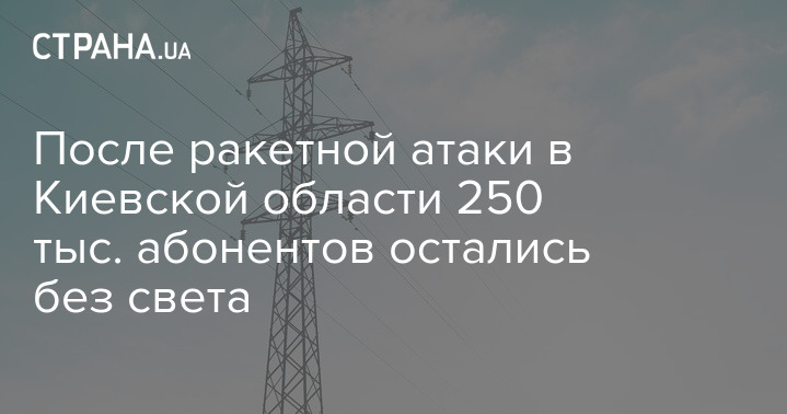В результате сегодняшнего массированного ракетного обстрела Украины в Киевской области 250 тыс. абонентов остались без электроснабжения.