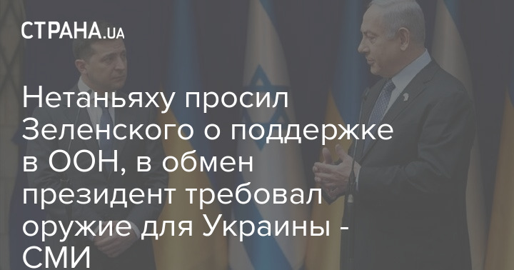 Нетаньяху просил Зеленского о поддержке в ООН, в обмен президент требовал оружие для Украины - СМИ