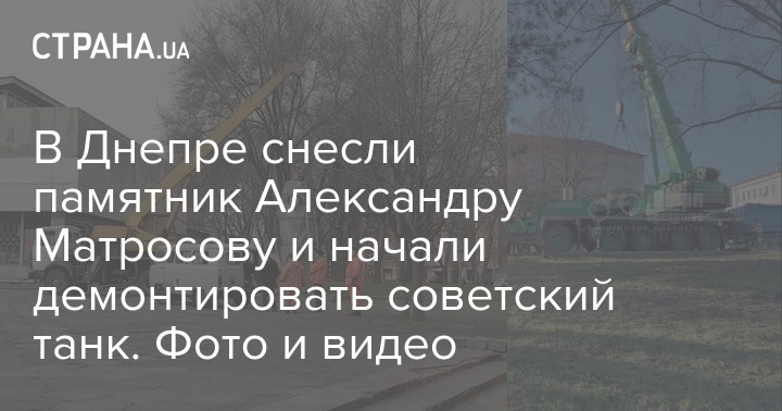 В Днепре снесли памятник советскому солдату Александру Матросову и начали демонтаж памятника-танка Т-34.