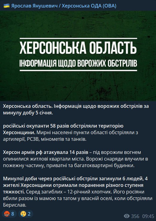 В пятницу, 6 января, в Украине идет уже 317-й день войны с РФ.
