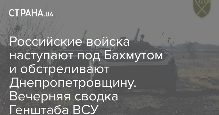 В Генеральном штабе Вооруженных сил Украины опубликовали оперативную сводку с фронта по состоянию на 18:00 6 января. Сообщается, что россияне наступают под Бахмутом и обстреливают Днепропетровскую область.