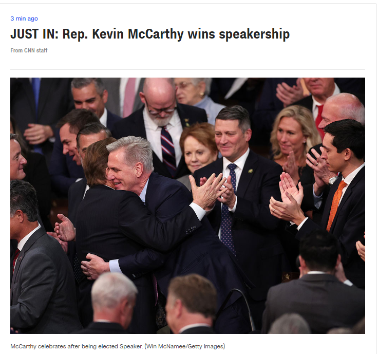 "Маккарти победил после 15 туров голосования, сделав их самыми продолжительными выборами спикера за 164 года", - пишут СМИ.