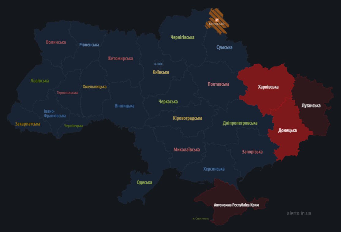 23:00 Воздушная тревога в Харьковской и Полтавской областях.