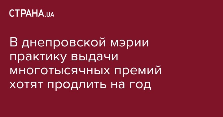 В днепровской мэрии практику выдачи многотысячных премий хотят продлить на год