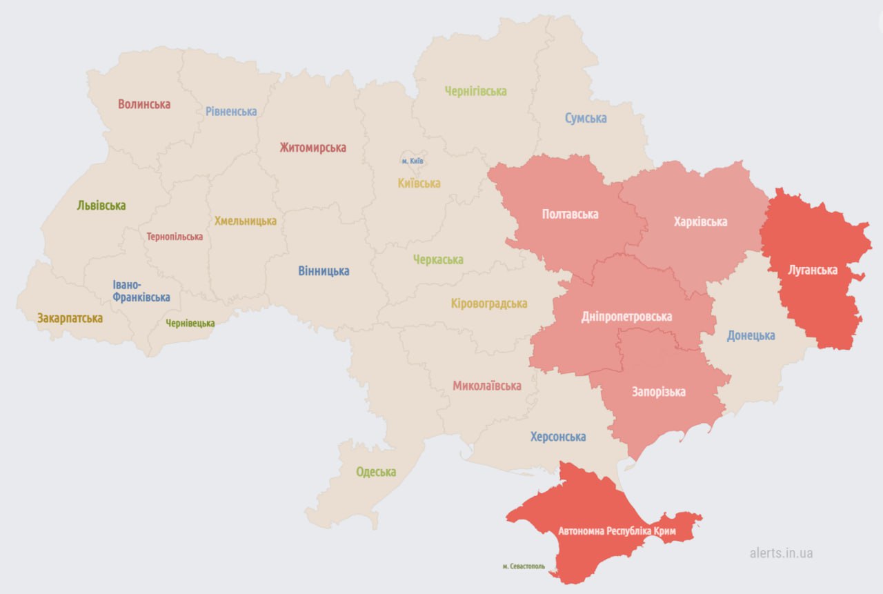 09.45 В Полтавской, Харьковской и Донецкой областях объявили воздушную тревогу. (В Луганской области и Крыму тревога действует постоянно).