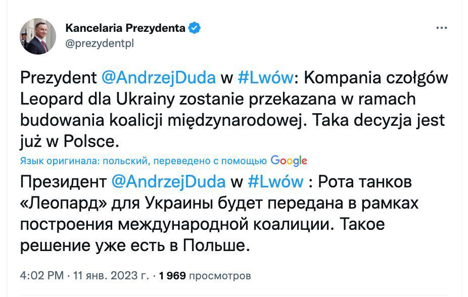 Издание пишет, что решение было принято на фоне заявления Польши. Один из британских спикеров сообщил журналистам, что Риши Сунак, премьер-министр Британии, попросил министра обороны Бена Уоллеса работать с партнерами в ближайшие недели, чтобы продвинуться "далее и быстрее с нашей поддержкой Украины, включая предоставление танков".