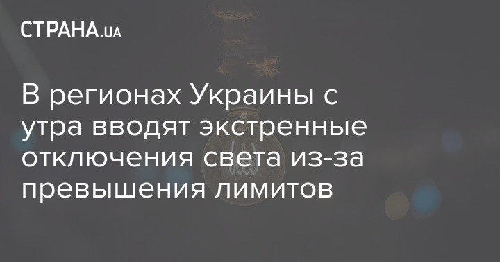 В регионах Украины стали с утра вводить экстренные отключения света. В Запорожской области возможны экстренные стабилизационные отключения, сообщает "Запорожьеоблэнерго".