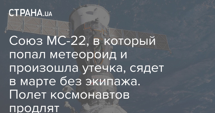 Союз МС-22, в который попал метеороид и произошла утечка, сядет в марте без экипажа. Полет космонавтов продлят