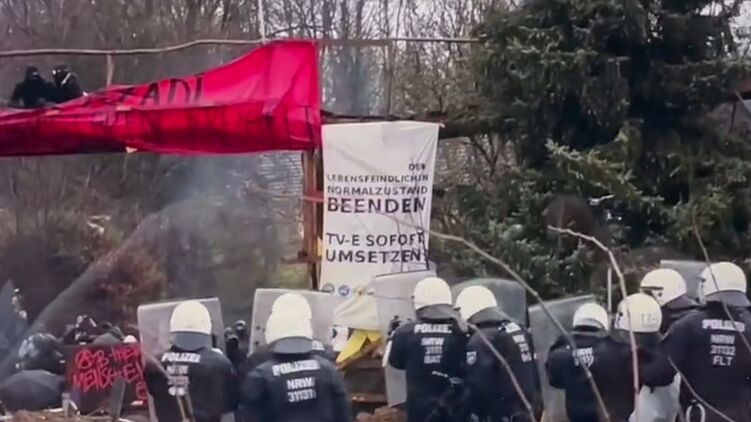 В деревне Лютцерат на западе Германии проходят столкновения немецкой полиции и экоактивистов.