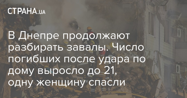 Число погибших после ракетного удара по дому в Днепре продолжает расти. На данный момент известно о 21 погибшем, среди которых - один ребенок.