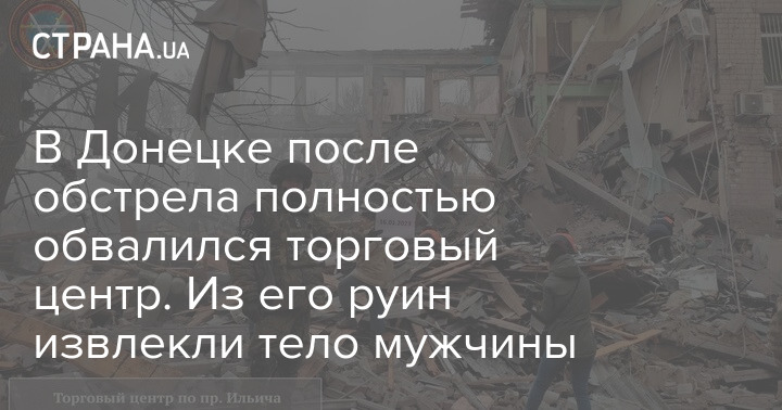"Власти ДНР" сообщили, что из-под завалов обрушившегося в результате обстрела торгового центра извлекли тело мужчины.