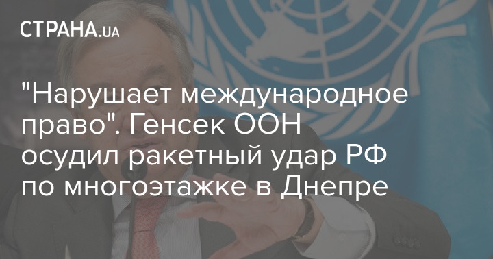 Генсек ООН Антониу Гутерриш решительно осудил российский ракетный удар по жилому дому в Днепре, в результате которого погибли по меньшей мере 44 человека.