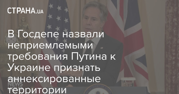 Госсекретарь США Энтони Блинкен назвал российские требования к Украине "признать новые территориальные реалии" неприемлемыми. Он считает, что такая позиция Москвы не позволяют начать переговорный процесс.