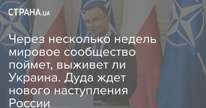 Через несколько недель мировое сообщество поймет, выживет ли Украина. Дуда ждет нового наступления России