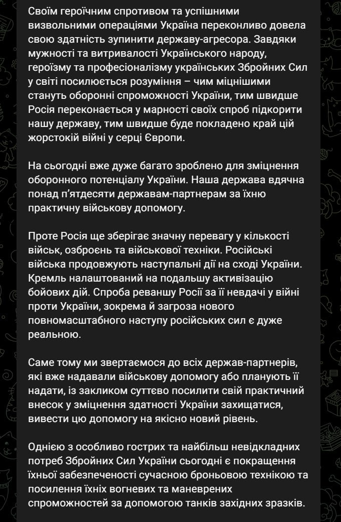 В связи с этим Украина обращается к государствам, имеющим на вооружении танки Leopard 2.
